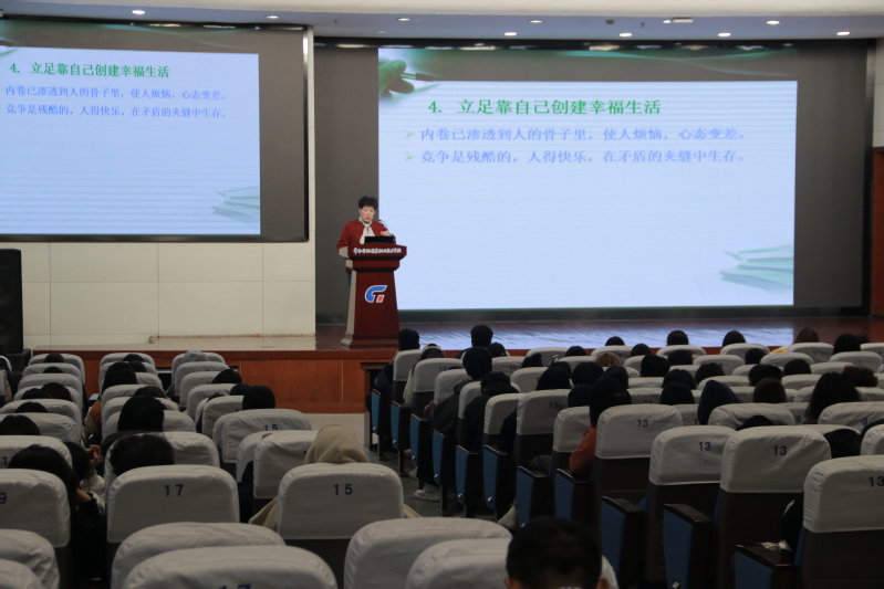 针对新生初入大学可能面临的“心灵孤岛”困境——学习生活不适应、班级宿舍融不进、人际关系处理难等问题,韩老师直击痛点,给出了“工具化”的心态调整方案。她提出善用8个工具塑造阳光心态,如改变对事情的态度、享受过程而非结果、活在当下专注眼前、靠自己创建幸福生活、常怀感恩之心、遇挫折时多看积极面、以心态塑造处境、压力大时学会“弯曲”变通,并用生动的小故事解读每个工具的核心逻辑,让抽象的“心态调整”变得可操作。